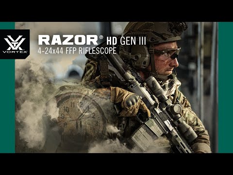 The Vortex Razor HD Gen III 4–24×44 delivers high‑end optical performance across a versatile 4–24× magnification range for mid‑ to long‑range shooting. Its illuminated EBR‑7D reticle in the first focal plane maintains consistent subtensions at all magnifications for accurate holdovers and wind corrections. The L‑Tec+™ Zero System enables quick, secure zeroing while the aircraft‑grade aluminum chassis with argon purging and hard anodized finish ensures reliable performance in demanding conditions. Parallax can be adjusted from 13.7 meters to infinity for flexible targeting at various distances.